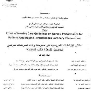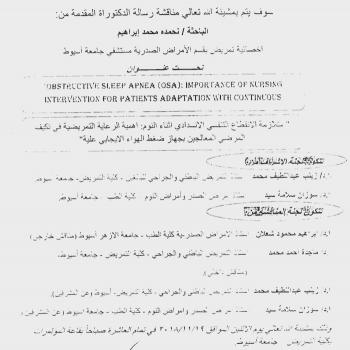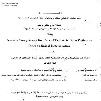 By God willing, the protocol of master thesis submitted by researcher/ Mary Mazaher Youssef, nursing specialist, will be discussed on Sunday, 18/11/2018, at 9:00 a.m., at the conference hall of the…