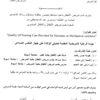 By God willing, doctoral thesis submitted by researcher/ Neama Ahmed Mohamed Ahmed- nursing specialist, Assiut University Hospital- will be discussed on Wednesday, 4/4/2018, at 1:30 p.m., at the…
