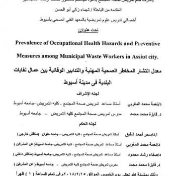 By God willing, master thesis submitted by researcher/ Shaima Ezzat Abdel Moneim - nursing specialist, Assiut University Hospital- will be discussed on Sunday, 4/3/2018, at 11:00 a.m., at the…