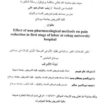 By God willing, the protocol of doctoral thesis submitted by researcher/ Zaynab Abdel Rheem Ali - assistant lecturer, Gynecology and Obstetrics Nursing Department, Faculty of Nursing, Sohag…