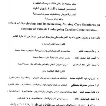 By God willing, doctoral thesis submitted by researcher/ Olfat Farouk Thabet – nursing specialist, Assiut University Hospital, will be discussed on Tuesday, 6/2/2018, at 11:00 a.m., at the conference…