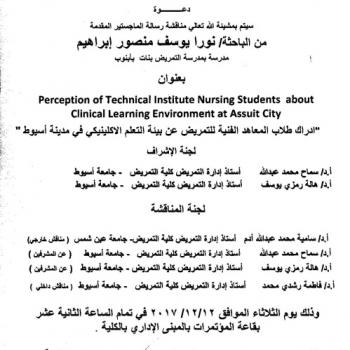 By God willing, master thesis submitted by researcher/ Nora Youssef Mansour Ibrahim, Teacher in Nursing School For Girls at Abnoub, will be discussed on Tuesday, 12/12/2017, at 12:00 noon, at the…