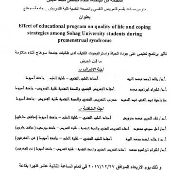 By God willing, doctoral thesis submitted by researcher/ Safaa Mustafa Mohamed Abdeen - assistant lecturer, Psychiatric Nursing Department, Faculty of Nursing, Sohag University, will be…