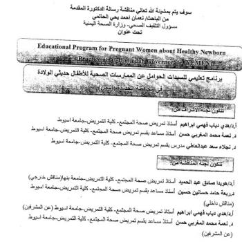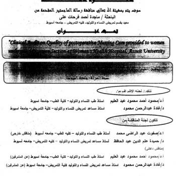 By God willing, master thesis submitted by researcher/ Magda Ahmad Farahat Ali - Demonstrator, Gynecology and Obstetrics Nursing Department, Faculty of Nursing, Assiut University- will be discussed…