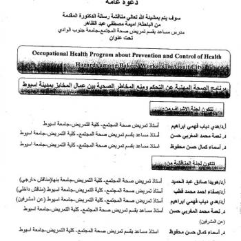 By God willing, doctoral thesis submitted by researcher/ Numan Ahmed Yahya Al – Hatami- Health Education Officer, Ministry of Health (Yemen)- will be discussed on Wednesday, 6/12/2017, at 10:00 a.m…