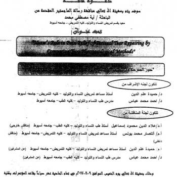 By God willing, master thesis submitted by researcher/ Aya Mostafa Mohamed, demonstrator, Gynecology and Obstetrics Nursing department, Assiut University- will be discussed on Thursday, 9/11/2017, at…