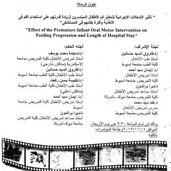 By God willing, doctoral thesis submitted by researcher/ Amira Hassan Abdel-Fattah- assistant lecturer, Pediatric Nursing Department, Faculty of Nursing, Assiut University- will be discussed on…