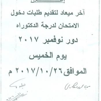 By God willing, the protocol of master thesis submitted by researcher/ Susan Shawky Peter, Nursing Specialist, will be discussed on Sunday, 17/9/2017, at 10:30 a.m., at the conference hall of the…