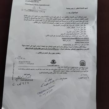 and sympathy for the loss of the College and one of its employees for many years, the honorable colleague / Susan Wahba Thabet, an employee in the Library Department at the College. We ask…