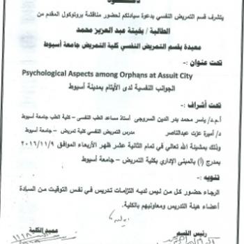 By God willing, The protocol of master thesis submitted by researcher/ Bakheeta Abd El- Aziz Mohammed Ahmed - demonstrator, Psychiatric Nursing department, Faculty of Nursing, Assiut University -…