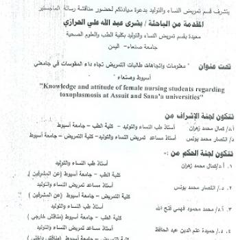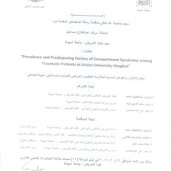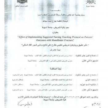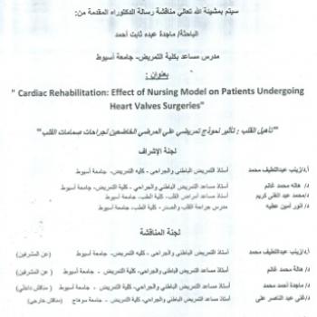 By God willing, master thesis submitted by researcher/ Mervat Abd El-Fatah Ismail - demonstrator, Adult Nursing, Faculty of Nursing, Assiut University - will be discussed on Sunday, 16/10/2016, at 12…