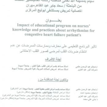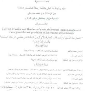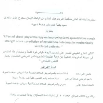By God willing, The protocol of master thesis submitted by researcher/ Eman Mamdouh Aziz - demonstrator, Faculty of Nursing, Assiut University - will be discussed on Tuesday, 6/9/2016, at 9:00 a.m.,…