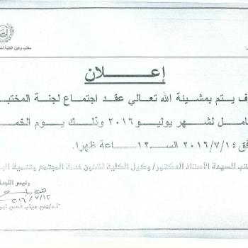 By God willing, meeting of faculty council of May will be held on Wednesday, 20/7/2016, at 10:00 a.m., at the faculty council hall, laboratories building, Faculty of Nursing - Assiut University.…