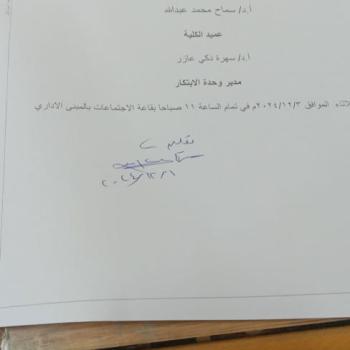 Dean of the College, the Vice Deans, the Department Heads, and the College’s faculty members, extend their sincere condolences to the teaching assistant, Mona Sayed Mahmoud, the teaching assistant…