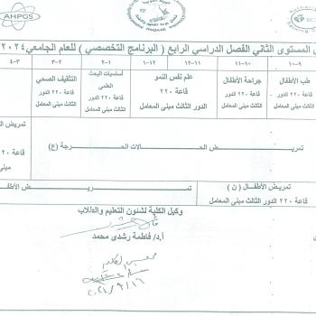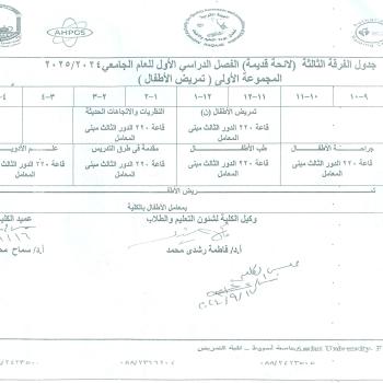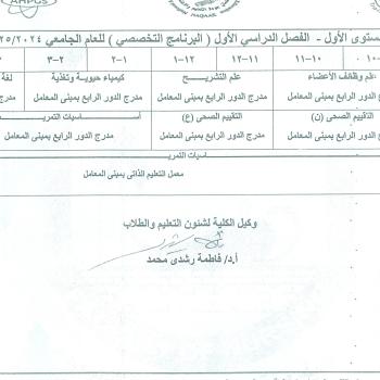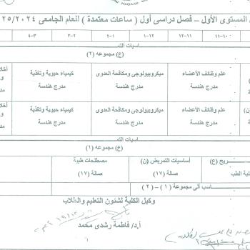 First level schedule – first semester (specialized program) for the academic year 2024-2025 AD