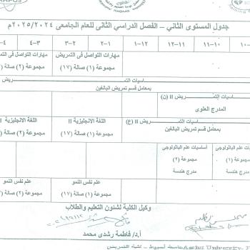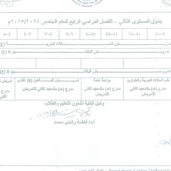 Second level schedule – fourth semester of the academic year 2024/25 AD