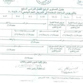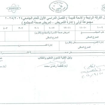 Fourth year schedule (old list) First semester of the academic year 2024-2025 AD First group (Nursing Administration – Community Health Nursing)