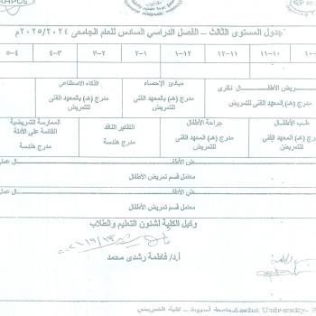 Third level schedule, sixth semester, for the academic year 2024-2025 AD