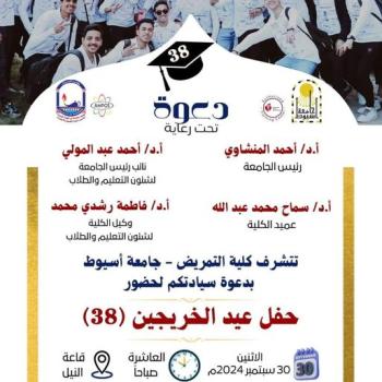 We are waiting for you tomorrow to participate in attending the thirty-eighth Graduates’ Day celebration in the Nile Hall at the university. An invitation to attend under the patronage of Mr. Professor Dr. Ahmed El-Minshawy, President of the University,