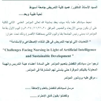 The college’s second scientific conference will be held on Wednesday and Thursday, 11/20/21/2024 AD, under the title “Challenges facing nursing in light of artificial intelligence and sustainability.”