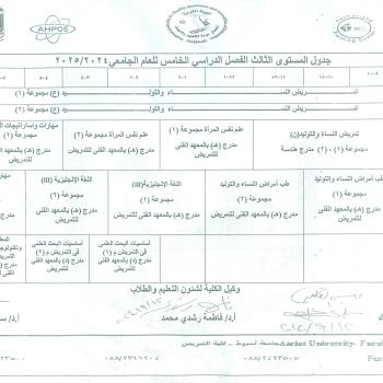 Schedule for the third level, fifth semester, for the academic year 2024-2025 AD