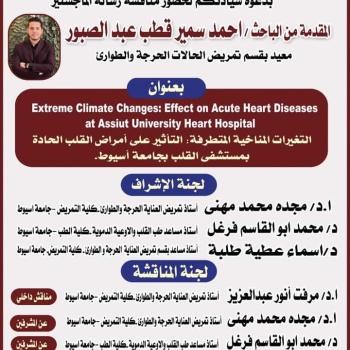 With pictures: Acceptance of the master’s thesis of researcher Ahmed Samir Qotb Abdel Sabour, teaching assistant in the Department of Critical Care Nursing, Faculty of Nursing - Assiut University. The researcher's master's thesis has been accepted,