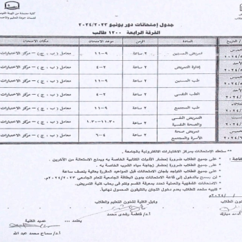 Schedule of exams for June 2023/2024 (specialized program), first level, second term, 96 students