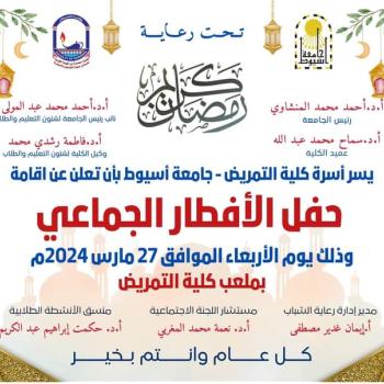 The Faculty of Nursing family is honored to invite all its students from the Faculty of Nursing and the Technical Institute of Nursing to participate in the group breakfast scheduled to be held on March 27, 2024 at the Faculty of Nursing Stadium,