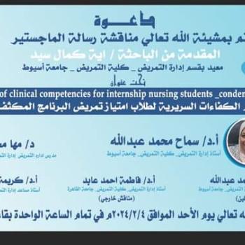 With pictures, the master’s thesis of the researcher/Aya Kamal Sayed, teaching assistant In the Department of Nursing Administration, Faculty of Nursing, Assiut University, received an excellent rating.