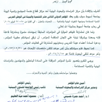 Allah willing, the Second International Conference - on Development and Environment in the Arab World, Sustainable Development and Confronting Environmental and Climate Changes... Challenges and Solutions, will be held in the period