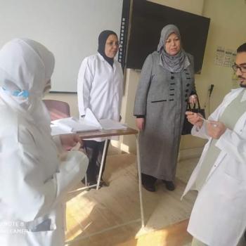 With pictures, the practical exams for the pediatric nursing course are under the supervision of Professor Dr. Samah Mohammad Abdullah, Dean of the College, Prof. Dr. Fatima Rushdi, Vice Dean of the College for Education and Student Affairs