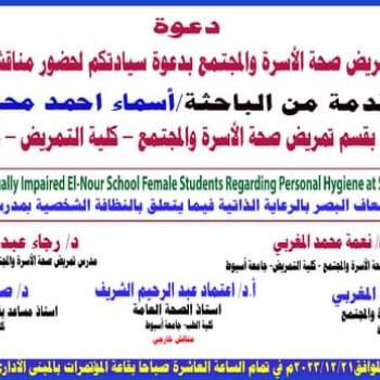 With pictures, the master’s thesis of the researcher/Asmaa Ahmed Muharram Ahmed, teaching assistant in the Department of Community Health Nursing,