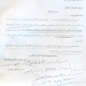 Obligatory condolences: Prof. Dr. Samah Muhammad Abdullah, Dean of the College, the deputies, the faculty members, and the college’s employees, mourn with sincere sadness and sorrow the death of one of the college’s employees/Alaa Muhammad Omar.
