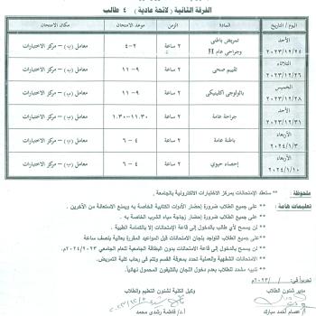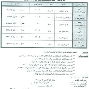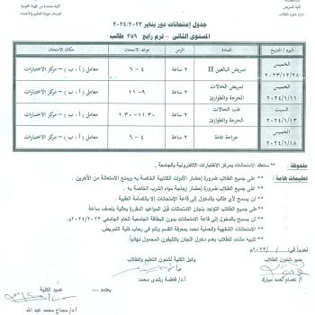 Exam schedule for January 2023/2024, second level - third term - (specialized program) 24 students