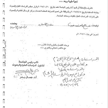 Regulations governing the Scientific Messages and Research Center service at the Graduate Studies Department of the university's colleges and institutes