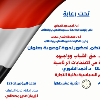 We are pleased to invite you to attend an awareness seminar entitled “Egypt Elects” The Right and Duty of Youth to Participate in the Presidential Elections