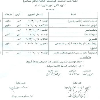 Master’s degree exam schedule in adult nursing (internal and surgical) “Part Two” October 2023
