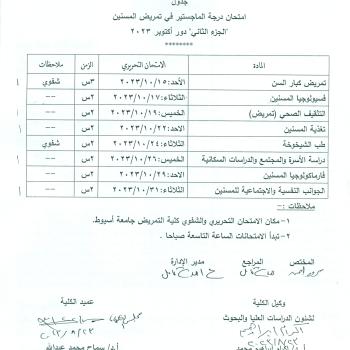 Schedule of the Master’s Degree Examination in Geriatric Nursing, “Part Two,” October 2023