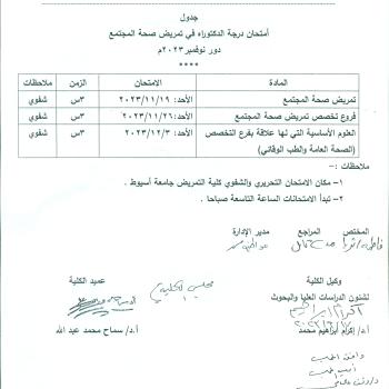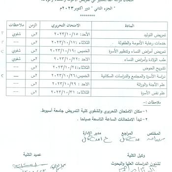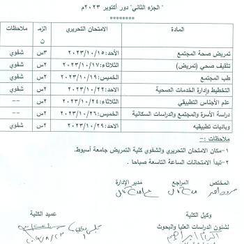 Schedule of the Master’s Degree Examination in Community Health Nursing, “Part Two,” October 2023