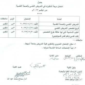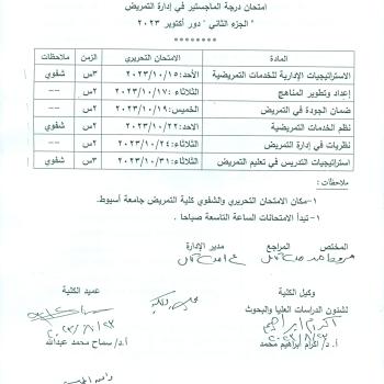 Schedule of the examination for the master’s degree in nursing administration nursing, “Part Two,” October 2023