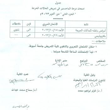 Schedule of the Master’s Degree Examination in Critical Care Nursing, “Part Two,” October 2023