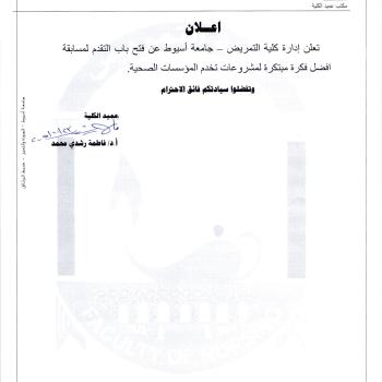 Announcing the results of the Ideal Student Competition at the Faculty of Nursing, Assiut University, under the auspices of: - Professor Dr. Ahmed El-Menshawy, President of the University - Professor Dr. Ahmed Abdel-Mawla, Vice President of the University