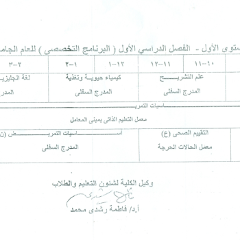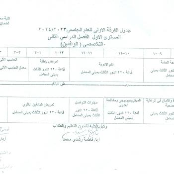 First level schedule - first semester (specialized program) for the academic year 2023/2024 AD