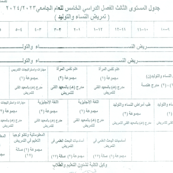 Third level schedule - fifth semester of the academic year 2023/2024 AD (obstetrics and gynecology nursing)
