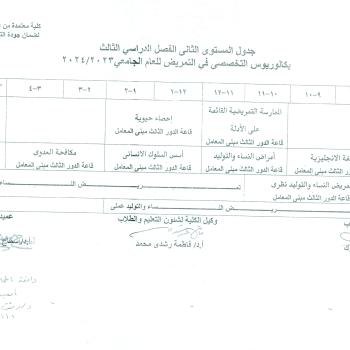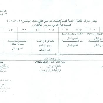 hird year schedule (old list), first semester of the academic year 2023/2024 AD, first group, pediatric nursing