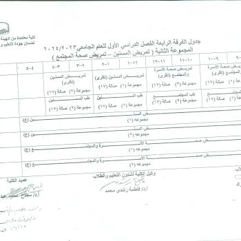 Fourth year schedule for the first semester of the academic year 2023/2024 AD, second group (elderly nursing - community health nursing)