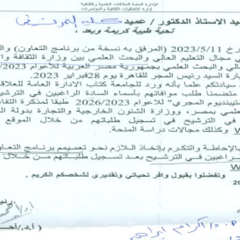 Request to circulate the cooperation program in the higher education and scientific research program between the Ministry of Culture and Innovation in Hungary and the Ministry of Education and Scientific Research in the Arab Republic of Egypt