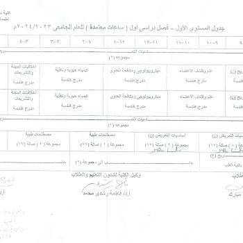 First level schedule - first semester (credit hours) for the academic year 2023/2024