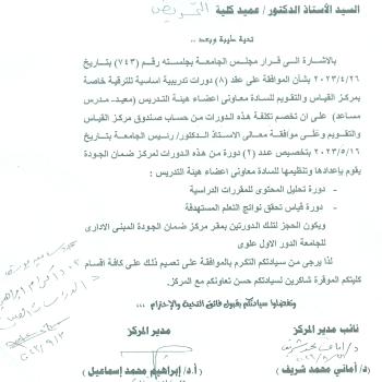 Resolution No. 743rd meeting of the University Council dated 26 April 2024 approving the holding of eight basic training courses for promotion at the Centre for Measurement and Evaluation for teaching assistants (assistant lecturer , demonstrator).