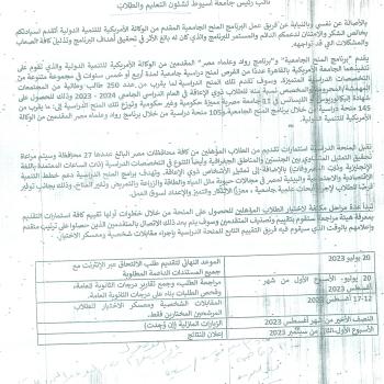 The American University in Cairo, Office of Financial Affairs and Scholarships for Students, announces the invitation to attend the committee to select students eligible for scholarships